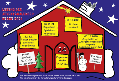 Lange haben wir überlegt, in welcher Form wir die sehr beliebten „lebendigen Advents-Treffen“ anbieten können. Wir wollten keine Privatperson oder Vereine in die Verlegenheit bringen,als Ausrichter auf die Einhaltung der Corona- und Hygieneregeln ...