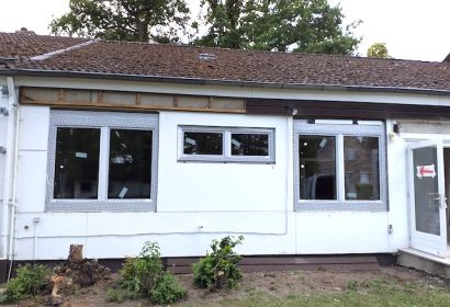 Noch sieht das Gemeindehaus nicht schön aus; es zeigt aber zum Glück ein großes Stück des Weiterkommens ...